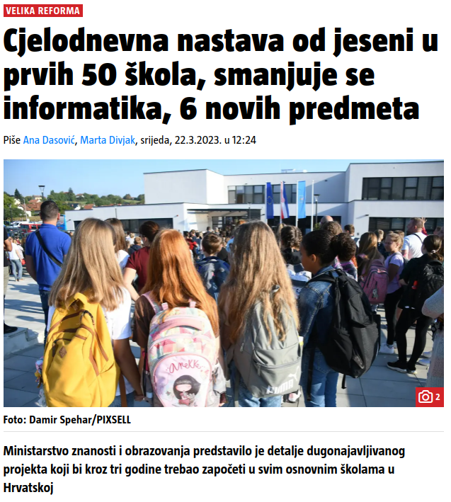 Konkretno, najsporniji dio u tome je, za mene osobno, smanjivanje broja obaveznih sati informatike na koji sam se cinično osvrnuo na Facebooku.