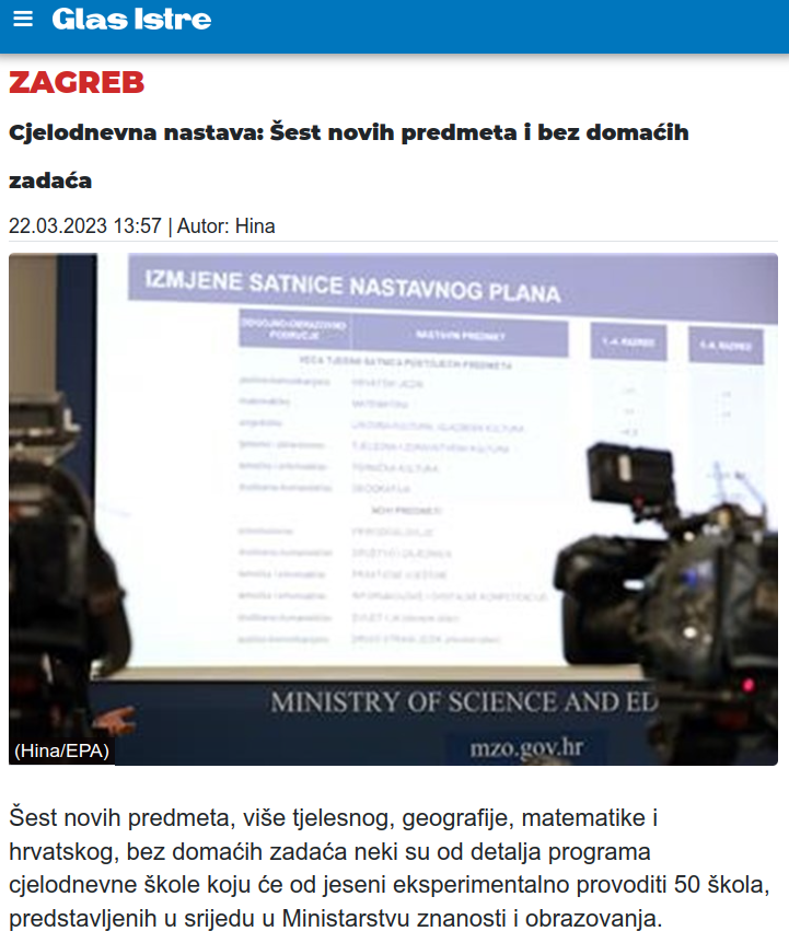 Detalje i rezultate ovog projekta ćemo tek saznati i vidjeti u praksi. Na žalost, prema prvim informacijama i dojmovima, osim nekoliko dobrih stvari, i nije neka promjena i upitna je provedba. Ponovo samo krpamo postojeći sustav na način da dodajemo predmete, povećavamo satnicu i djeci i nastavnicima, podilazimo sindikalnim pritiscima i pristicima dijela inertnih nastavnika pa se ne usudimo smanjiti ili maknuti neke predmete, zatrpavamo nastavnike birokracijom umjesto da to vrijeme iskoriste na usavršavanje, i slično. Sustavne reforme cijelog obrazovnog sustava i dalje nema na vidiku.